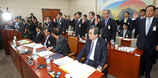 우선 이번 국정감사에서 불려 나올 대상으로 산업통상자원위원회는 윤동준 포스코 부사장, 김병렬 GS칼텍스 대표, 차화엽 SK 종합화학 대표, 최원병 농협중앙회 회장, 김치현 롯데건설 사장, 도성환 홈플러스 대표, 박봉균 SK에너지 대표이사, 황태현 포스코건설 대표이사, 서충일 STX 사장, 구지은 아워홈 전무, 김한진 이케아코리아 전무, 홍성열 마리오아울렛 회장 등 대기업 최고경영자(CEO)를 비롯해 55명의 일반 증인을 국감장에 부르기로 의결했다.