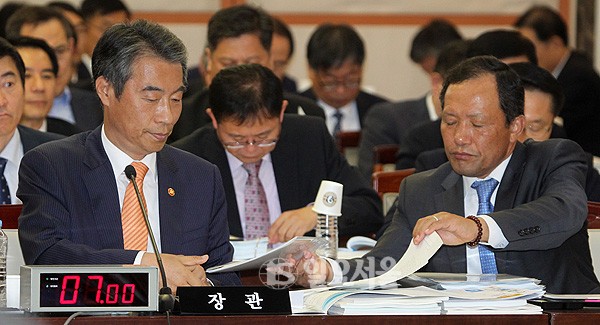 정종섭 안전행정부 장관이 7일 서울 세종로 정부서울청사에서 열린 국회 안전행정위원회의 안전행정부 국정감사에서 답변자료를 준비하고 있다.