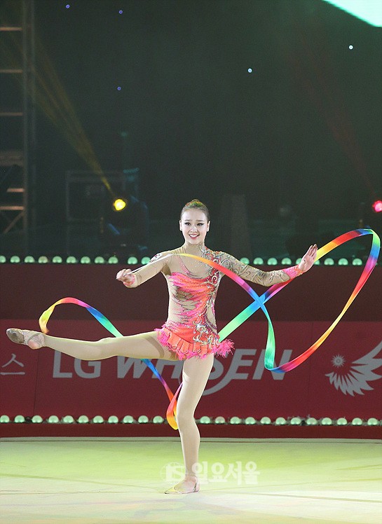 [일요서울 | 송승진 기자] 리듬체조선수 손연재가 19일 오후 경기 고양시 킨텍스 전시장에서 열린 'LG휘센 리드믹올스타즈 2014'에 참석해 공연을 펼치고 있다.