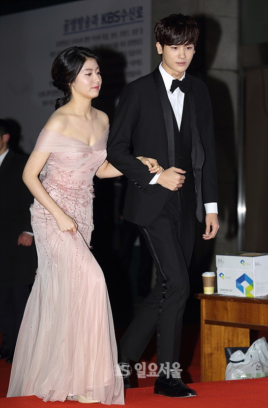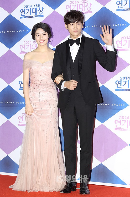 ▲ 2014 KBS 연기대상 레드카펫 행사에 참석한 탤런트 남지현과 아이돌그룹 제국의 아이들 멤버 박형식