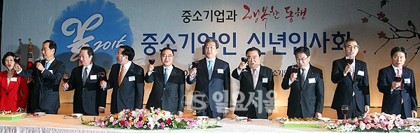 정홍원 국무총리와 김무성 새누리당 대표, 문희상 새정치민주연합 비상대책위원장이 7일 오전 서울 여의도 중소기업중앙회에서 열린 '2015 중소기업인 신년인사회'에서 참석자들과 함께 건배를 하고 있다. 정대웅 기자 photo@ilyoseoul.co.kr 저작권자 © 일요서울i 무단전재 및 재배포 금지 정대웅 기자 다른기사 보기