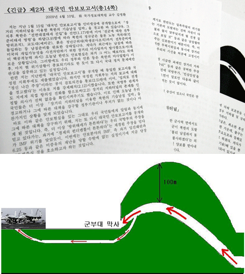 김 교수는 “우리 군은, 미군 전쟁 지휘소가 있는 청계산과 미2사단이 주둔하고 있는 소요산, 그리고 수도방위사령부가 있는 관악산 등에 북한의 장거리 지하터널의 출구가 개척되어 있을 가능성에 대비해야 한다”며 “아울러 청와대의 뒷산격인 북악산 또는 북한산에도 장거리 지하터널이 들어와 있을 가능성에도 대비할 필요가 있는데, 김정일 입장에서 볼 때 청와대만큼 최우선적인 타격목표가 있을 수 없기 때문”이라고 보고서에 지적했다.