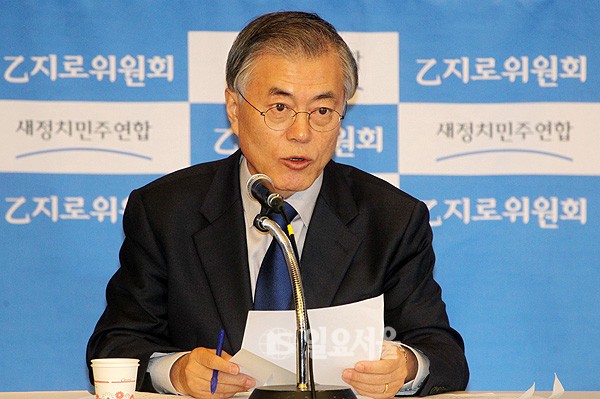5일 오전 국회도서관에서 열린 '새정치민주연합 을지로위원회 당대표 후보 초청 토론회'에서 문재인 후보가 모두발언을 하고 있다.