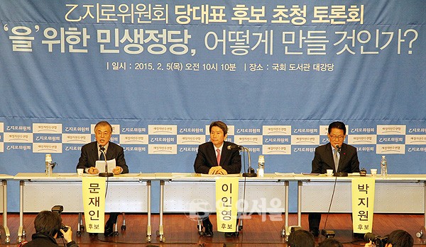 5일 오전 국회도서관에서 열린 '새정치민주연합 을지로위원회 당대표 후보 초청 토론회'에서 문재인, 이인영, 박지원 후보가 모두발언을 하고 있다. 정대웅 기자 photo@ilyoseoul.co.kr 저작권자 © 일요서울i 무단전재 및 재배포 금지 정대웅 기자 다른기사 보기