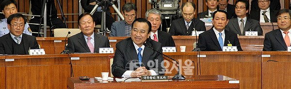 이완구 국무총리 후보자가 11일 국회에서 열린 인사청문회 증인·참고인 심문에 앞서 웃음짓고 있다.