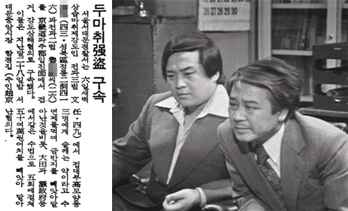 당시 사건을 다룬 신문 기사 스크랩 (좌) 드라마 의 한 장면. 조 형사(사진 왼쪽)의 실제 모델이 바로 남 경위다.