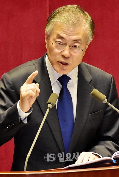새정치민주연합 문재인 대표가 9일 국회 본회의장에서 교섭단체 대표연설하고 있다.