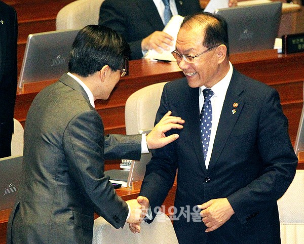 황교안 국무총리와 황우여 사회부총리가 23일 오전 서울 여의도 국회에서 열린 본회의에 출석해 인사나누고 있다. 정대웅 기자 photo@ilyoseoul.co.kr 저작권자 © 일요서울i 무단전재 및 재배포 금지 정대웅 기자 다른기사 보기