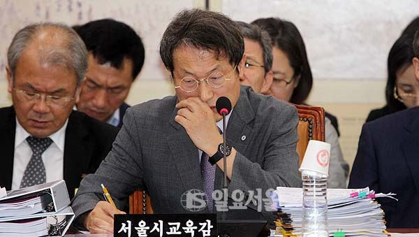 조희연 서울시교육감이 21일 서울 여의도 국회에서 열린 교육문화체육관광위원회의 서울시교육청, 경기도교육청 등에 대한 국정감사에서 난감한 표정을 짓고 있다.