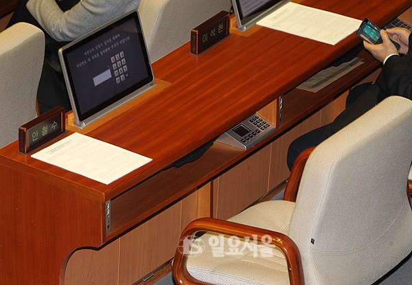 19대 정기국회 마지막 날인 9일 서울 여의도 국회에서 열린 본회의에 안철수 새정치민주연합 의원이 불참해 자리가 비어 있다. 정대웅 기자 photo@ilyoseoul.co.kr 저작권자 © 일요서울i 무단전재 및 재배포 금지 정대웅 기자 다른기사 보기
