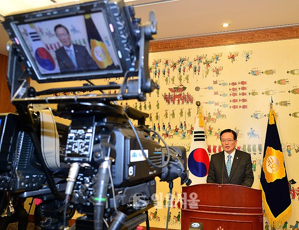 정의화 국회의장이 10일 국회 접견실에서 대국민담화문을 발표하고 있다.