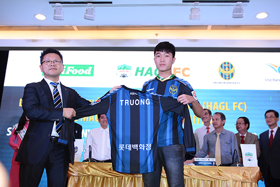 인천 유나이티드는 지난 28일 베트남 호찌민의 렉스호텔에서 정의석 인천 단장과 도완 응웬 덕 베트남축구협회 부회장 등이 참석한 가운데 인천과 2년 임대 계약한 쯔엉의 입단식을 열었다.