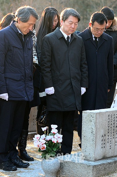 국민의당 안철수 창당준비위원회 인재영입위원장과 한상진 공동창당준비위원장이 14일 오전 서울 강북구 4.19 민주묘지를 찾아 참배하고 있다.