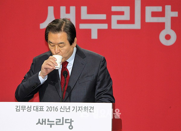김무성 새누리당 대표가 18일 오전 국회 의원회관 소회의실에서 2016 신년 기자회견을 하고 있다.