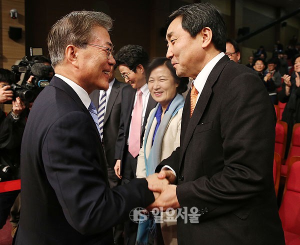19일 더불어민주당 문재인 대표가 국회 의원회관에서 신년 기자회견을 마치고 이종걸 원내대표와 악수를 나누며 환하게 웃고 있다. 정대웅 기자 photo@ilyoseoul.co.kr 저작권자 © 일요서울i 무단전재 및 재배포 금지 정대웅 기자 다른기사 보기