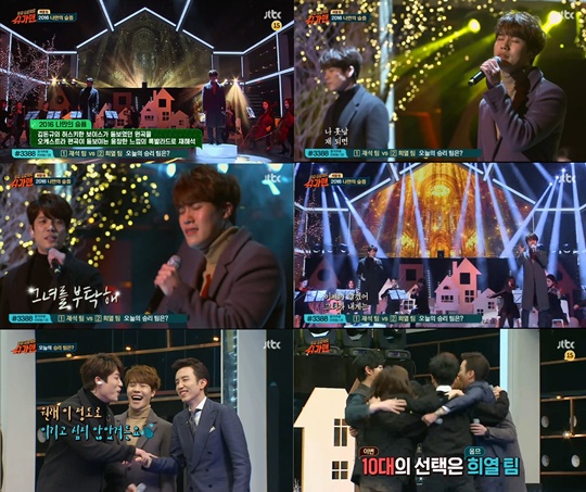 특히 명불허전 옴므의 폭발적인 가창력은 관객들의 눈물샘을 자극했고 무대가 끝난 뒤 상대편인 MC 유재석마저 “상대편이지만 정말 잘한다”며 감탄을 금치 못했다.