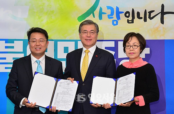 문재인 더불어민주당 대표가 20일 국회에서 이철희 두문정치연구소 소장(왼쪽)과 권미혁 여성단체연합회 전 대표의 입당원서를 받고 있다. 정대웅 기자 photo@ilyoseoul.co.kr 저작권자 © 일요서울i 무단전재 및 재배포 금지 정대웅 기자 다른기사 보기