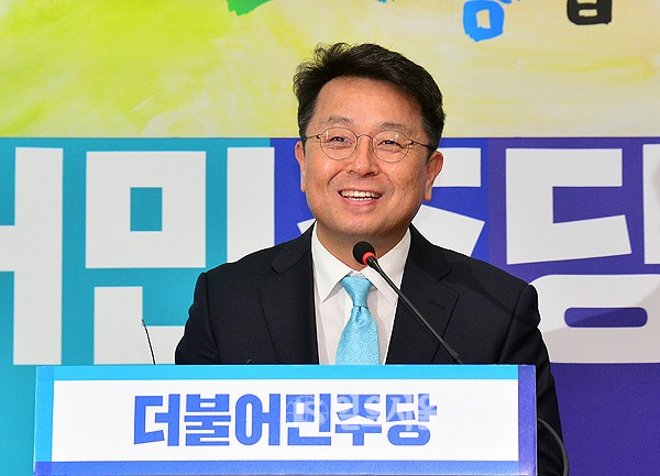 이철희 두문정치연구소 소장이 20일 국회에서 열린 더불어민주당 입당 기자회견에서 포부를 밝히고 있다.
