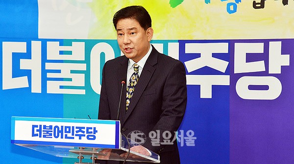 더불어민주당에 입당하는 김병기(55) 전 국가정보원 인사처장이 26일 서울 여의도 국회에서 열린 입당 기자회견에서 포부를 밝히고 있다.