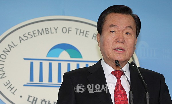 김경재 전 청와대홍보특보가 1일 오후 국회 정론관에서 한국자유총연맹 제16대 회장 출마를 선언하고 있다.