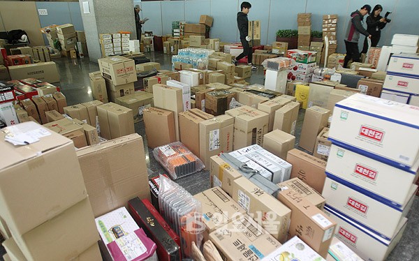 민족 최대의 명절 설을 일주일 앞둔 1일 국회 의원회관 로비에 배달된 설 선물들이 수북이쌓여 있다.