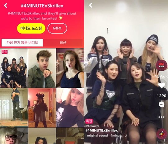 미국 젊은이들의 ‘핫이슈’ 애플리케이션 ‘뮤지컬리(Musical.ly)’가 지난 3일부터 ‘포미닛X스크릴렉스’라는 이름의 캠페인을 시작했다.