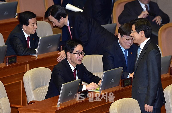 황교안 국무총리와 이준식 사회부총리 겸 교육부 장관이 15일 국회에서 열린 본회의에서 환하게 웃으며 대화를 나누고 있다. 정대웅 기자 photo@ilyoseoul.co.kr 저작권자 © 일요서울i 무단전재 및 재배포 금지 정대웅 기자 다른기사 보기