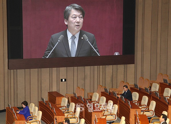 안철수 국민의당 상임공동대표가 18일 오전 서울 여의도 국회 본회의장에서 비교섭단체 대표연설을 하고 있다.