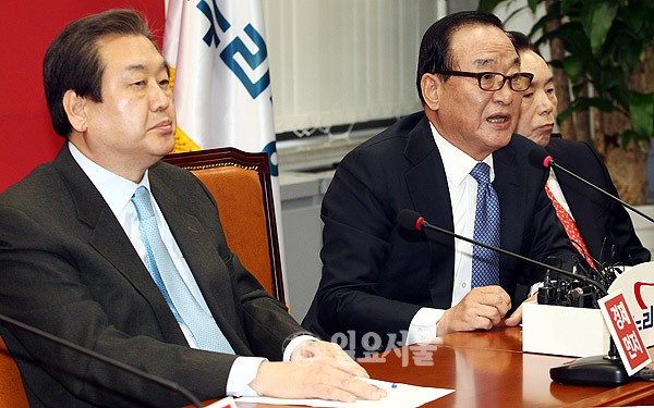 새누리당의 공천 룰 갈등이 격화되고 있는 가운데 18일 서울 여의도 국회에서 열린 새누리당 최고위원회의에서 서청원 최고위원이 김무성 대표의 공천룰 관련 발언을 반박하고 있다.