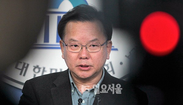 더불어민주당 김부겸 전 의원이 25일 오후 서울 여의도 국회 정론관에서 홍의락 의원 컷오프 탈락과 관련해 기자회견을 갖고 있다.