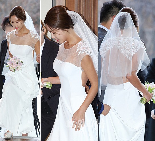 [IS포토] 황정음, 파격 웨딩드레스 '뒤와 옆'이 휑~