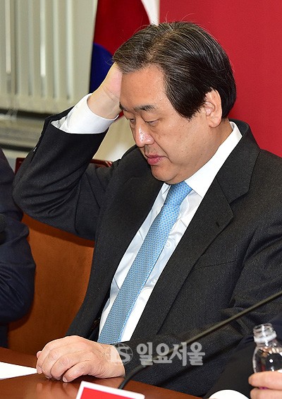 김무성 새누리당 대표가 3일 국회에서 열린 최고위원회의에서 생각에 잠겨 있다.