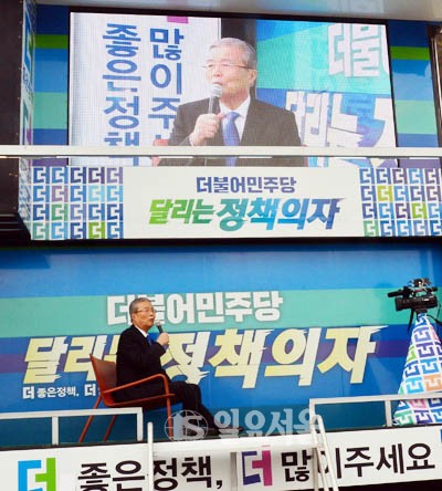 김종인 더불어민주당 비상대책위원회 대표가 3일 오전 서울 여의도 국회 본청 앞에서 시민들의 의견을 직접 청취하고 취합해 정당과 지역공약에 반영하는 '달리는 정책의자' 시승에 앞서 인사말을 하고 있다.