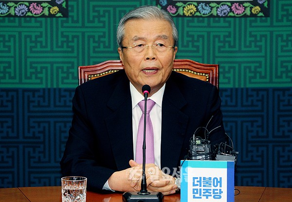 김종인 더불어민주당 비상대책위원회 대표가 23일 서울 여의도 국회에서 기자회견을 열고 당 잔류를 선언하고 있다.