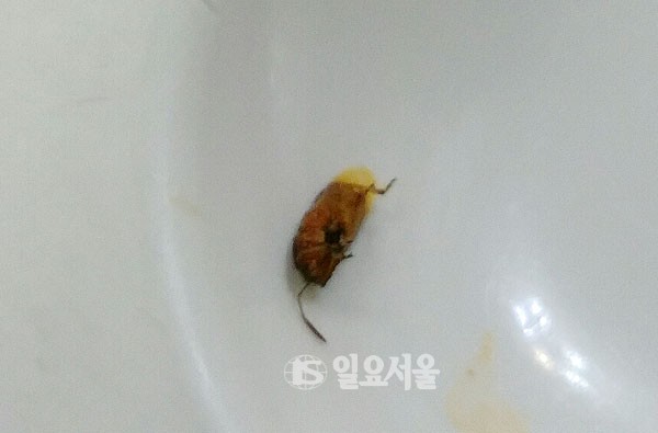 취재를 위해 국회에서 점심식사를 하던 한 언론사 기자의 그릇에서 나온 벌레는 쌀알 두개 정도의 크기로 마치 바퀴벌레처럼 보여 경악을 금치 못했다.