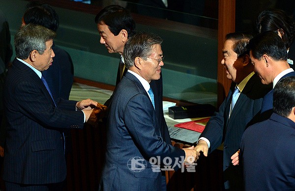 더불어민주당 문재인 전 대표가 19일 오전 국회에서 열린 본회의에 참석해 동료 의원들과 인사하고 있다. 정대웅 기자 photo@ilyoseoul.co.kr 저작권자 © 일요서울i 무단전재 및 재배포 금지 정대웅 기자 다른기사 보기
