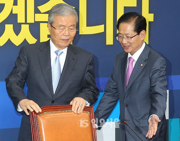 김종인 더불어민주당 비상대책위 대표아 오제세 전당대회준비위원장이 30일 국회에서 열린 전당대회준비위원회 제1차 회의에 참석하고 있다.