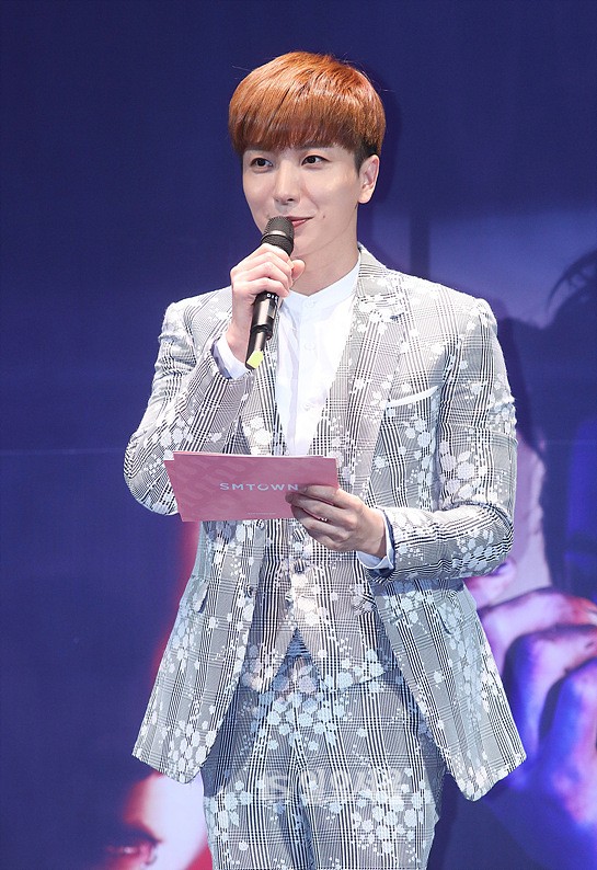 [일요서울 | 송승진 기자] 아이돌그룹 슈퍼주니어 멤버 이특이 8일 오전 서울 강남구 삼성동 SM타운 코엑스 아티움에서 열린 정규 3집 앨범 '이그잭트(EX'ACT)' 발매 기념 쇼케이스에 참석, 진행을 하고 있다.