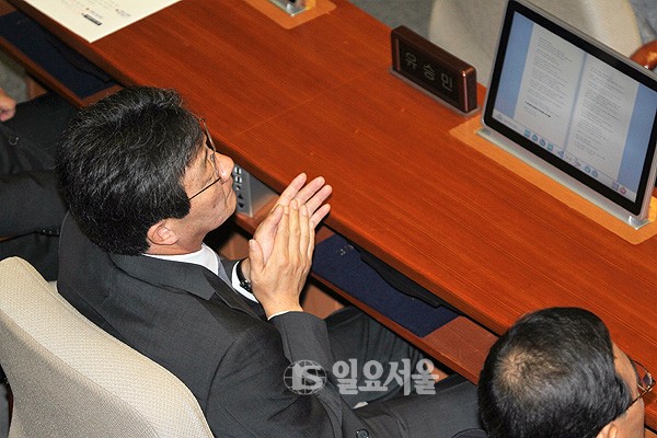13일 서울 여의도 국회 본회의장에서 열린 20대 국회 개원식에서 유승민 의원이 박근혜 대통령의 축하연설 도중 박수를 치고 있다. 2016.06.13 일요서울 정대웅 기자