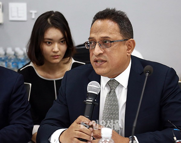 27일 서울 여의도 옥시레킷벤키저 본사에서 열린 국회 가습기살균제 국정조사 특위 현장조사에서 아타 샤프달 옥시 대표가 발언하고 있다. 정대웅 기자 photo@ilyoseoul.co.kr 저작권자 © 일요서울i 무단전재 및 재배포 금지 정대웅 기자 다른기사 보기