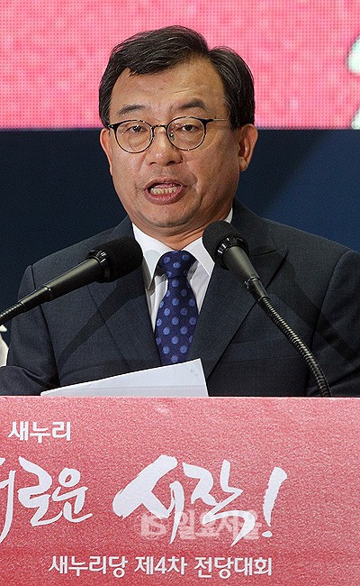 9일 서울 잠실실내체육관에서 열린 새누리당 전당대회에서 선출된 이정현 신임 당대표가 당선 수락연설을 하고 있다.
