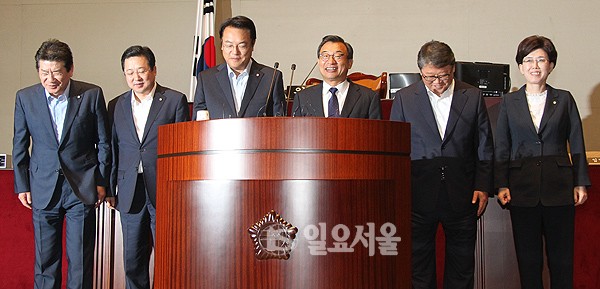 이정현 새누리당 대표를 비롯한 신임 지도부가 22일 국회에서 열린 의원총회에서 인사하고 있다. 정대웅 기자 photo@ilyoseoul.co.kr 저작권자 © 일요서울i 무단전재 및 재배포 금지 정대웅 기자 다른기사 보기