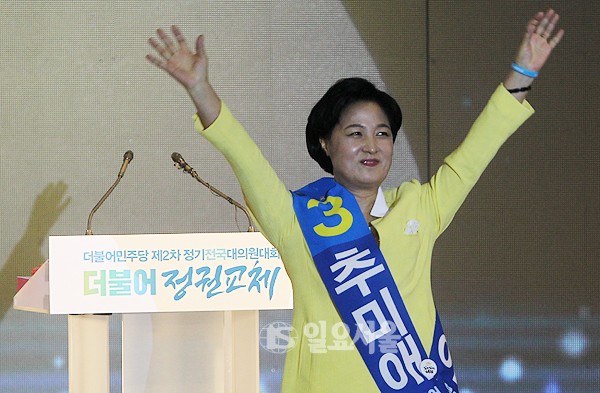27일 서울 올림픽공원 체조경기장에서 열린 더불어민주당 전국대의원대회에서 추미애 후보가 정견발표에 앞서 인사를 하고 있다. 정대웅 기자 photo@ilyoseoul.co.kr 저작권자 © 일요서울i 무단전재 및 재배포 금지 정대웅 기자 다른기사 보기