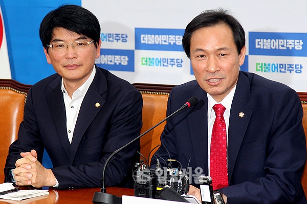 우상호 더불어민주당 원내대표가 19일 서울 여의도 국회에서 열린 정기국회 관련 기자간담회에서 인사말을 하고 있다.