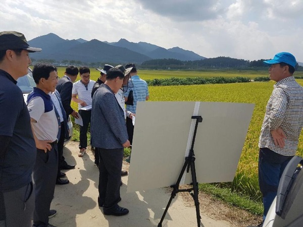 29일 강진군에 따르면 지난 23일 평가위원 4명이 현지를 방문해 벼 보급종 채종단지 후보지역평가항목에 따라 포장 적합성 및 확대가능성, 관배수 여건 및 재해위험도, 포장관리의 효율성 및 채종경험, 수매여건 등을 종합적으로 심사한 결과 작천면 현산리 박산단지 21농가, 120필지, 32.1ha가 94.5점의 높은 점수를 얻어 2017년 벼 보급종 채종단지로 최종 선정됐다.