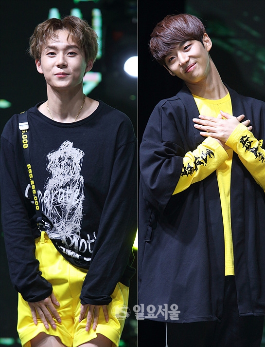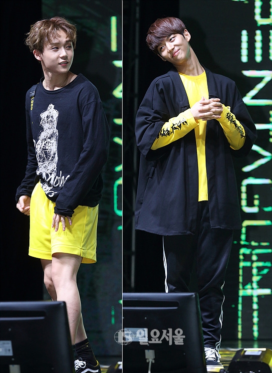 [일요서울 | 송승진 기자] 아이돌그룹 펜타곤 멤버 이던-홍석이 10일 오후 서울 반포 세빛둥둥섬 컨벤션 센터에서 열린 데뷔 1집 미니앨범 발매기념 쇼케이스에 참석해 포토타임을 갖고 있다.