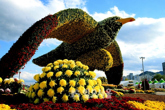 [일요서울 | 부산 전홍욱 기자] 마산 앞바다를 굽어보며 펼쳐지는 아름다운 오색국화의 향연이 깊어가는 가을을 수놓는다.