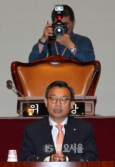 송민순 전 장관 회고록 관련 18일 오전 국회에서 열린 새누리당 긴급 의원총회에서 이정현 대표가 모두발언을 하고 있다.