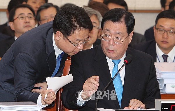 황찬현 감사원장이 18일 국회 법제사법위원회에서 열린 국정감사에서 답변자료를 준비하고 있다.