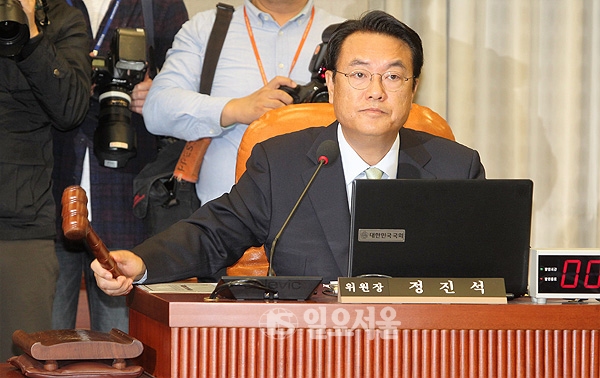 26일 국회에서 열린 운영위원회 전체회의에서 정진석 위원장이 국정감사 출석을 거부한 우병우 청와대 민정수석 고발 안을 의결하고 있다.